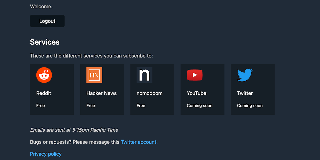 nomodoom - Email digest service for Reddit and Hacker News | Product Hunt