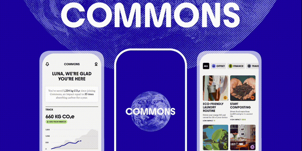 With Commons, anyone can lower their carbon footprint. Measure your emissions, get tailored advice on how to reduce them, and offset any that you can’t. Learn easy ways to live more sustainably and ta