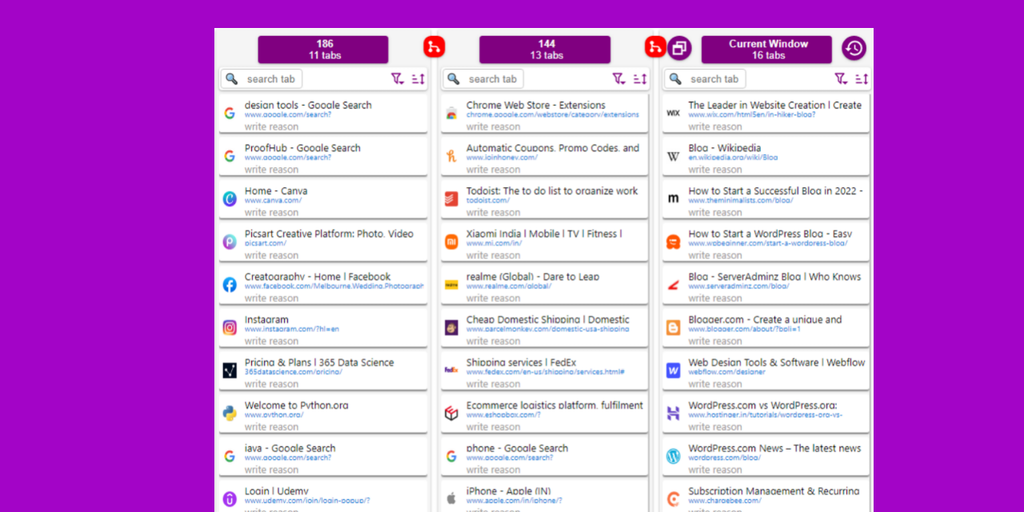 Tab map is multi-windows vertical tabs extension for chrome. You can see all tabs and windows in parallel vertical format at one place. This is not only tab manager but also a window manager. You can