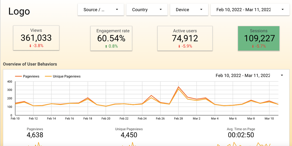 We're a dashboard and reporting agency taking the tricky data work off of your hands. Whether it's just a simple Google Analytics integration, or a huge Excel sheet, we'll take your data and make it u