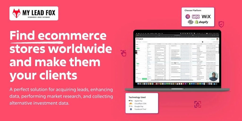 Specially built for Agencies and Freelancers. My Lead Fox provide e-commerce data so you can find your target clients. Eg Find pet stores in your area offer them photography. Find Shopify Store active