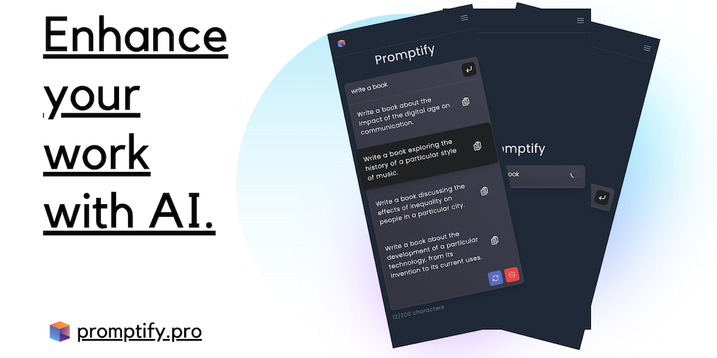 Promptify.pro uses AI to analyze your input and generate suggestions for alternative wording, phrasing, and new ideas. This makes it an excellent tool for anyone who writes regularly, whether it be fo