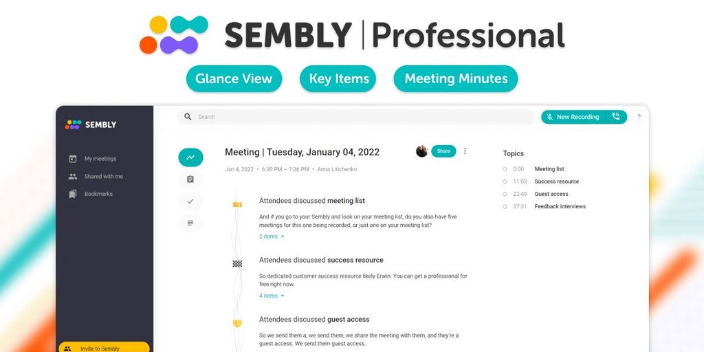 Sembly Professional - Extract key meeting takeaways with the power of AI | Product Hunt
