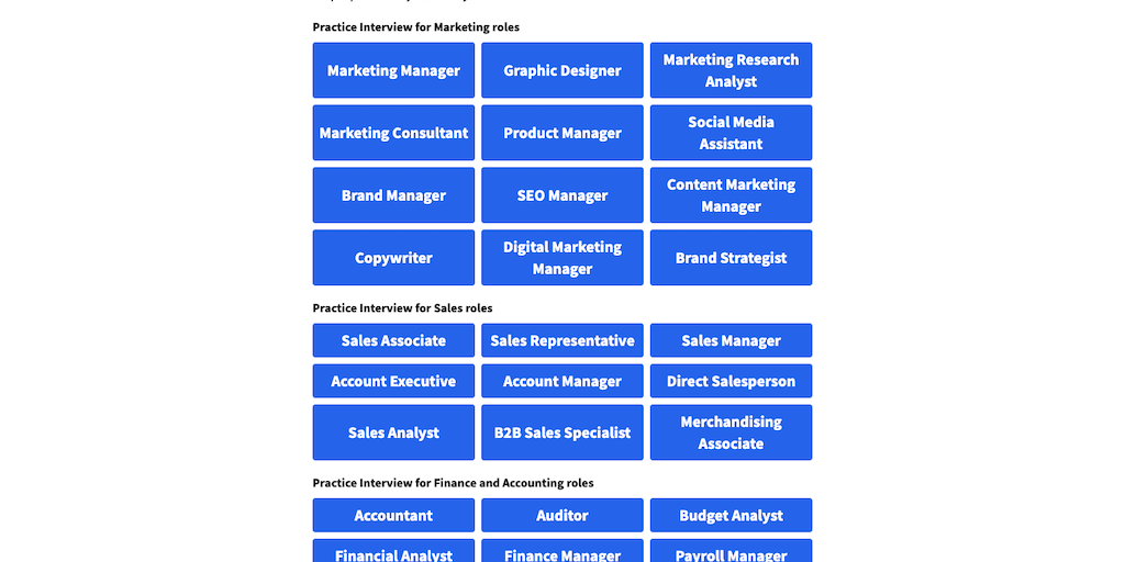 Practice Interview - Practice Job Interviews for 100+ roles with ChatGPT API | Product Hunt