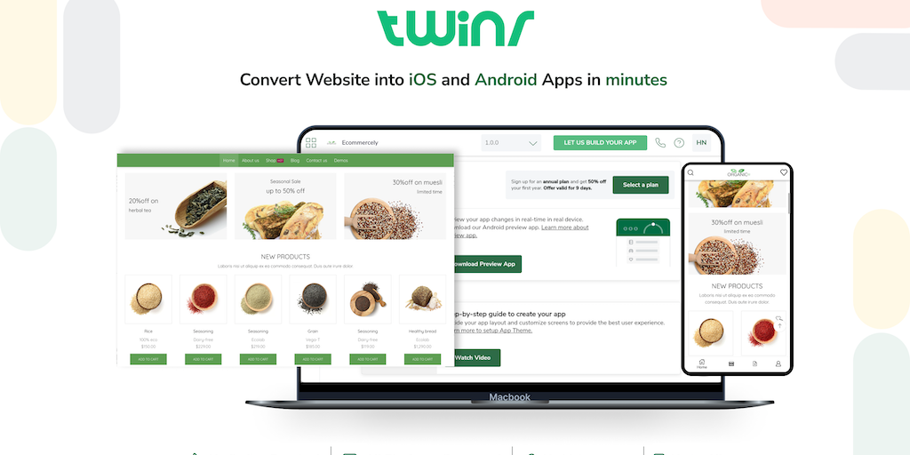 Twinr is a fast & affordable no code mobile app builder to automatically convert ANY websites to high quality & fully customized native Android & iOS apps. 100% App Approval; doesn't matter what indus