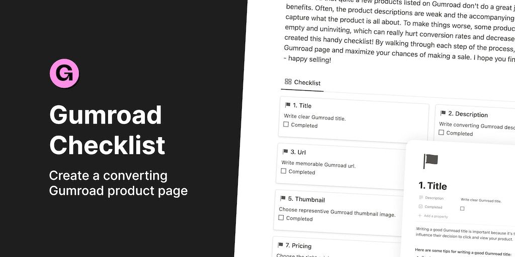 Gumroad checklist covers all the essential steps you'll need to take in order to create an effective Gumroad product page that will attract customers and help you make sales.
