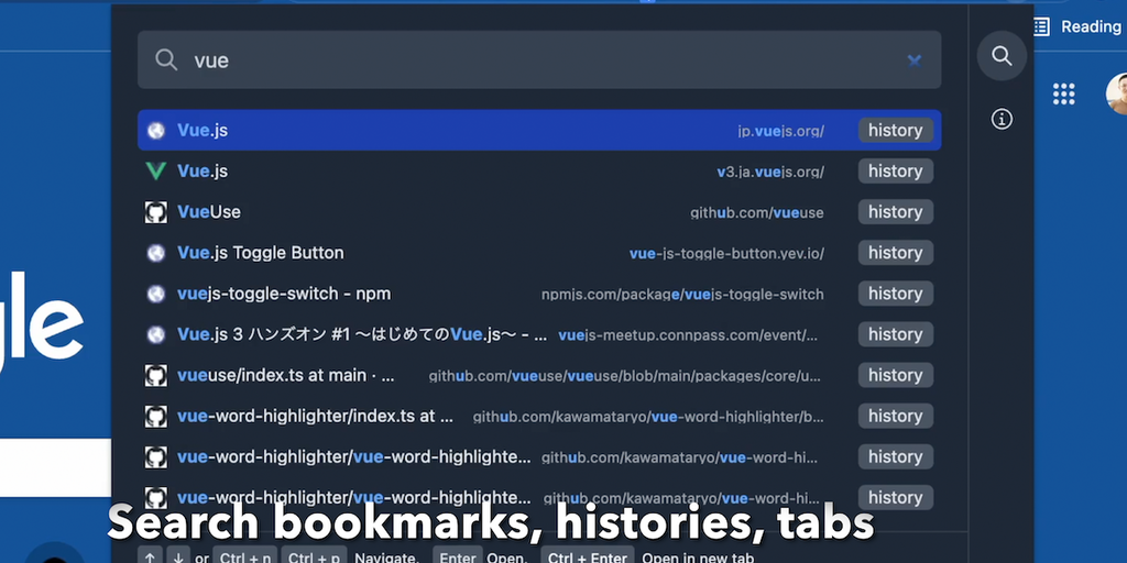 A very simple Chrome extension that enables fuzzy search of browsing histories and bookmark and tab. Inspired by Sidekick search dialog. The Japanese meaning of `chikamichi` is a shorter way.