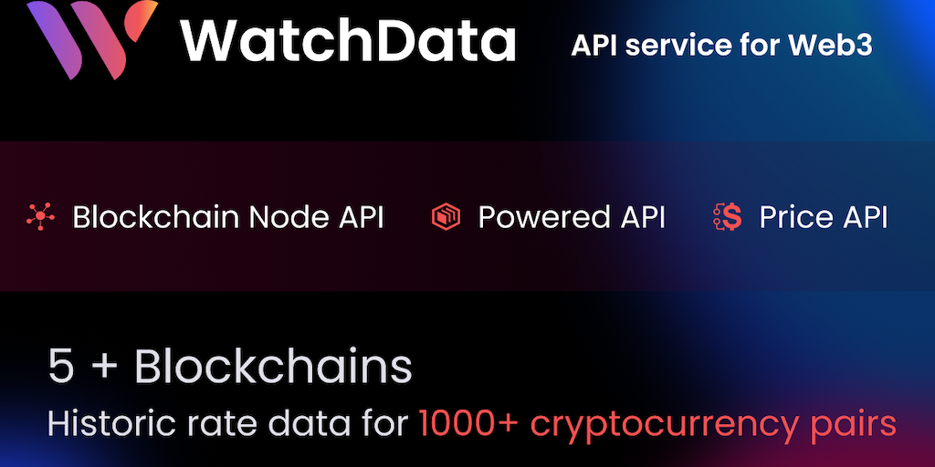 WatchData is a reliable and scalable blockchain API service, with a suite of tools made for blockchain developers and researchers. Multiple blockchains in one interface allow you to process blockchain