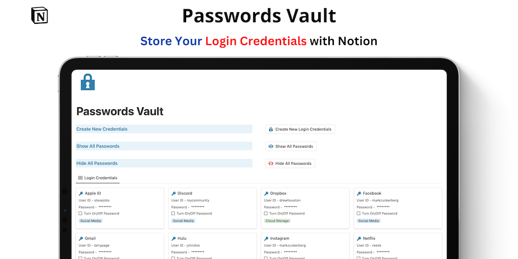 Passwords Vault - Store all your user ID, emails and passwords in Notion | Product Hunt