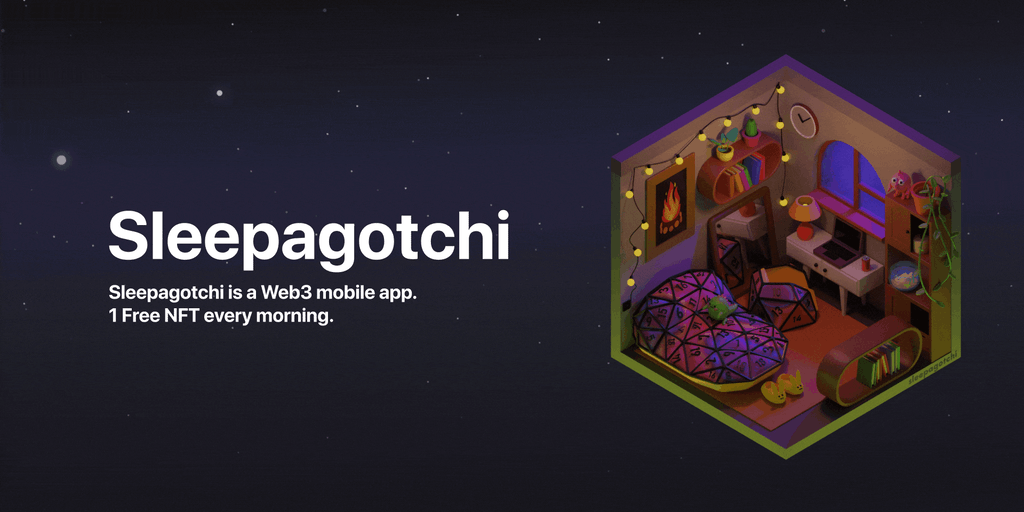 Sleepagotchi is an app that rewards users for keeping a consistent sleep schedule with free NFTs and crypto tokens called SHEEP. Users get 1 Free NFT every morning, and 2 Free NFTs if they slept well.