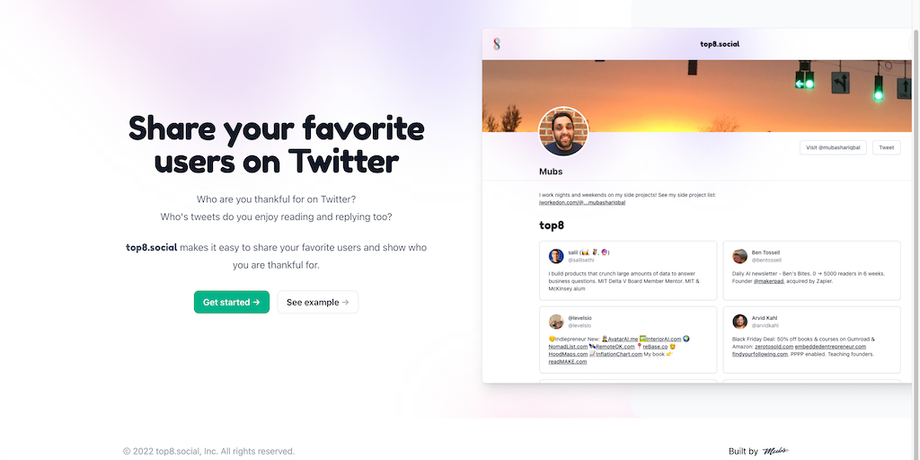 top8.social makes it easy to share your favorite users and show who you are thankful for.
