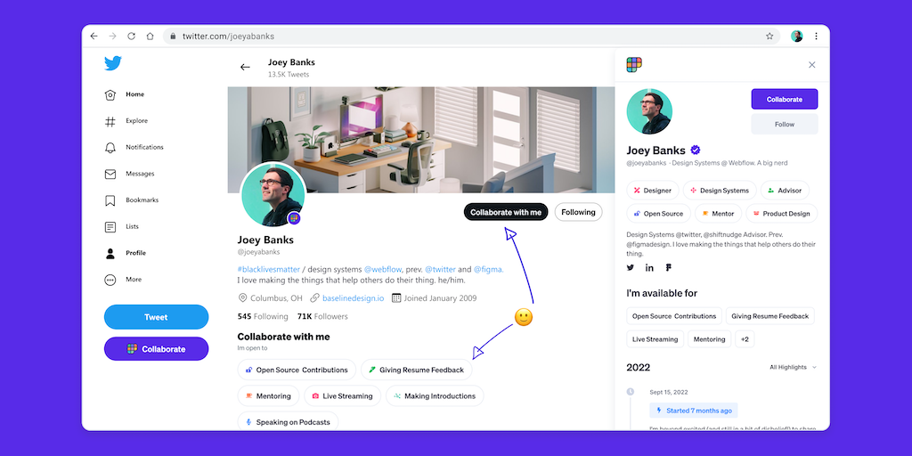 Polywork’s browser extension turns Twitter into a collaboration network. See what everyone is open to collaborating on, right on their Twitter profile + search for collaborators across Twitter. It’s n
