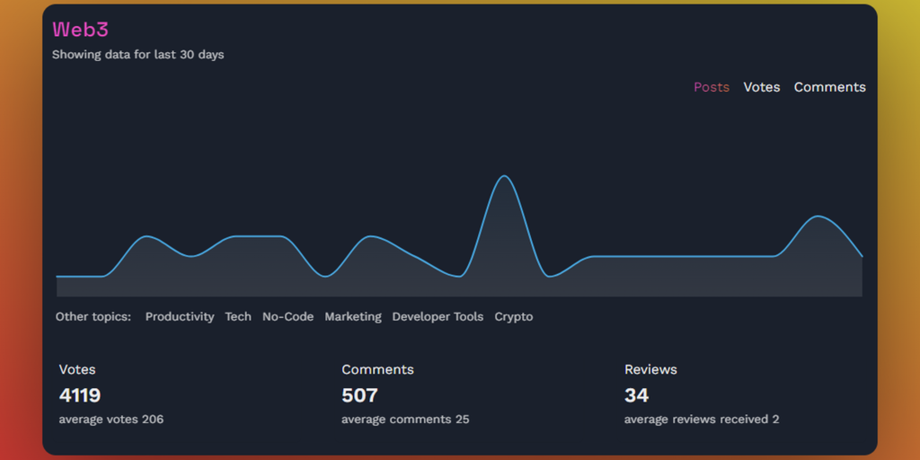 Stats PH brings interesting analytics about Product Hunt launches. The trends about top products of the week, trending topics, best time and day to launch, etc...