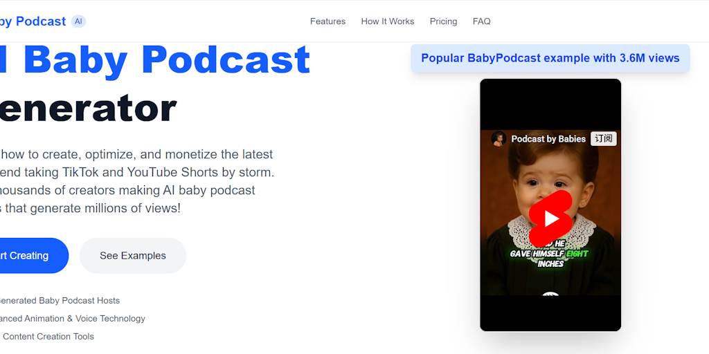 Empowering self-media creators: With just one click, instantly craft adorable AI baby podcasts. This unique content not only captivates social media but also offers parents a magical glimpse – letting