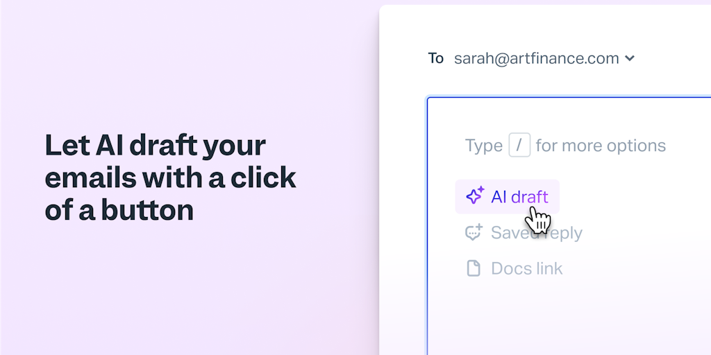Use AI to draft replies to customer emails. Generated based on your past conversations and help content, high-quality drafts are ready for you to review, revise, and send.