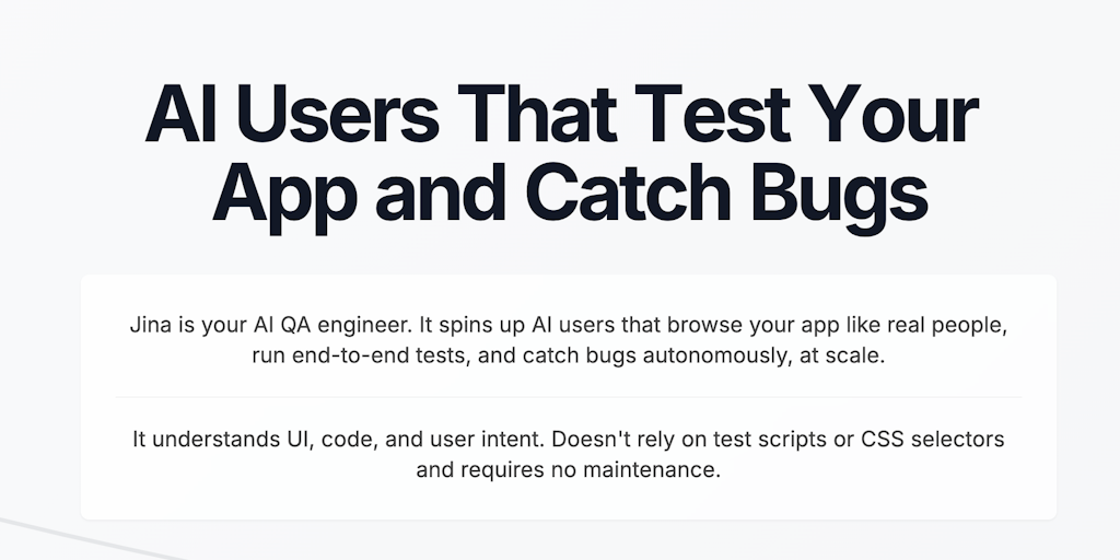 Jina is an AI QA engineer that normally tests apps end-to-end. In this launch, she’s picked up a side gig: roasting landing pages. She visits your site like a real user, critiques the UX, and drops a