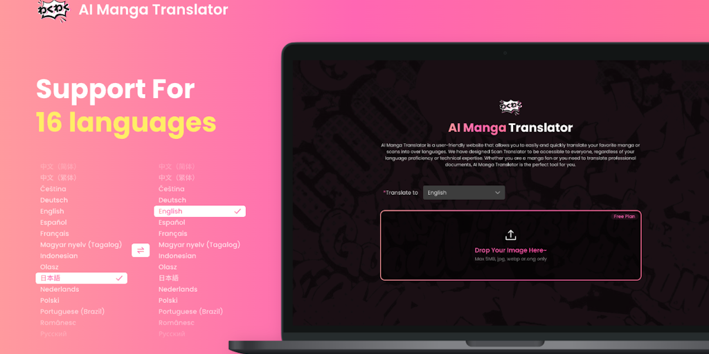 AI Manga Translator lets you translate your favorite comics or scans into multiple languages easily and quickly. Our products can be translated while maintaining the structure of the original image.