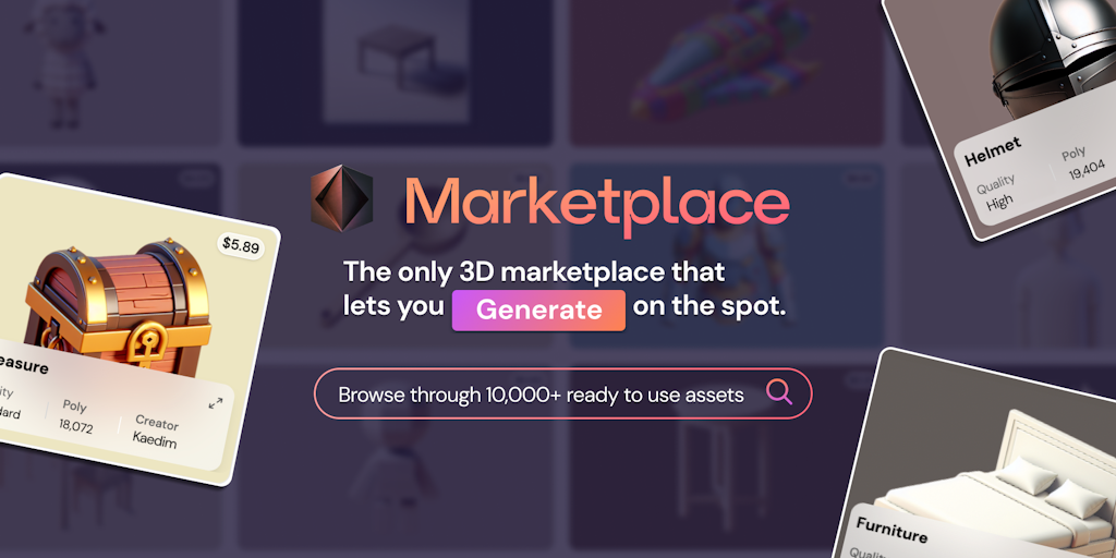 AI-powered 3D Marketplace - 10K+ clean 3D models to download OR generate with AI | Product Hunt