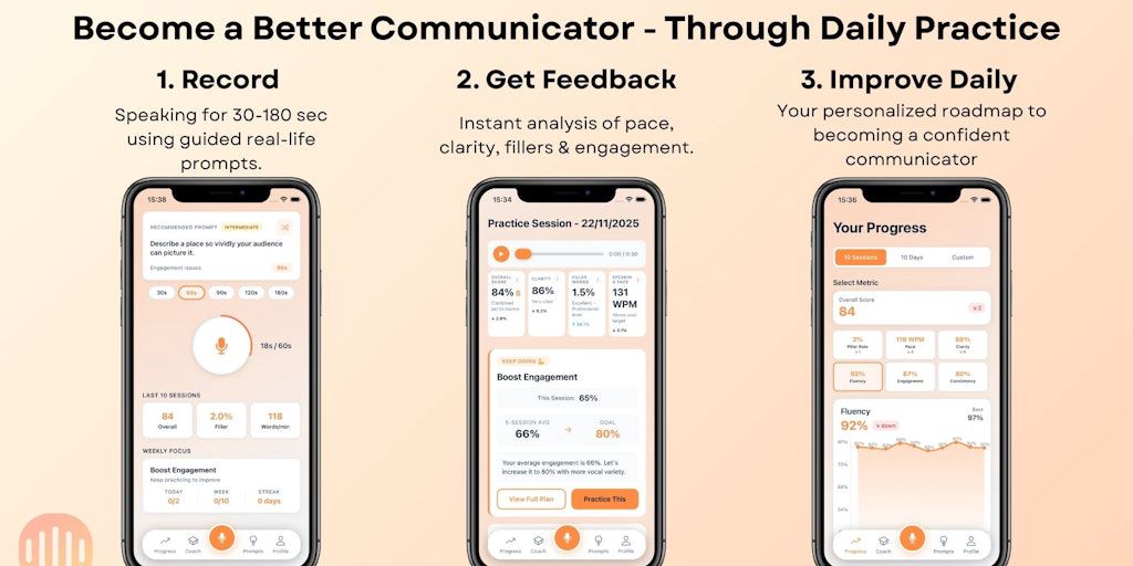 Speaking is a skill - and the only way to get better is through consistent reps. Whether you're a creator, a professional, or someone who wants to sound more confident AI Talk Coach makes speaking pra