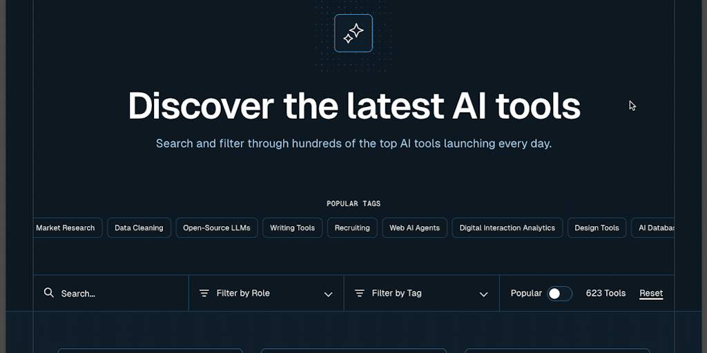 AI Tools Directory is... well basically what the title says :) We've collected >1,000 of the latest AI tools so you can stay up-to-date. Find the AI tool you need using search, filter by role (e.g. "E