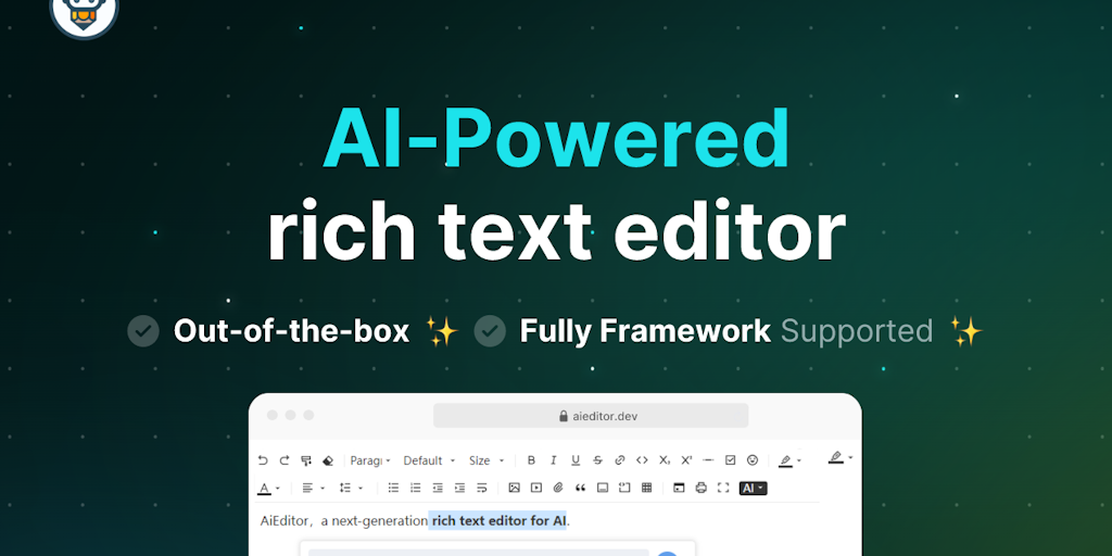 AiEditor — An open source AI-powered rich text editor. Out-of-the-box, Fully Framework Supported,Markdown Friendly; Support private deployment with your private LLMs API key;
