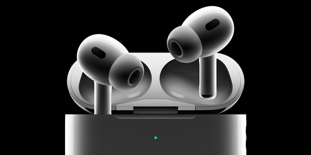 AirPods Pro 2 — Pro-level Active Noise Cancellation, Adaptive Audio, Transparency, Personalized Spatial Audio, and a total hearing health experience.