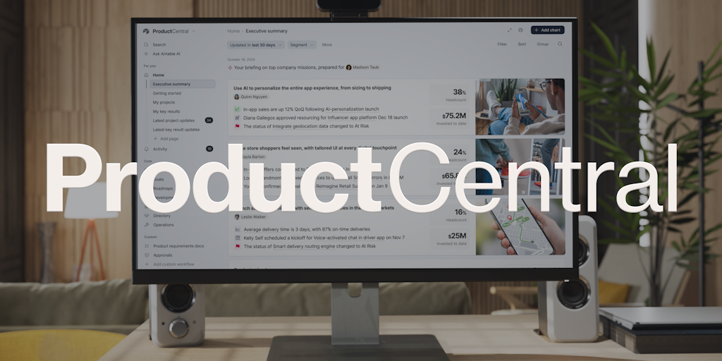 ProductCentral is Airtable's first-ever dedicated solution. ProductCentral connects every stage of product development, unifying AI-powered customer insights, product roadmaps, headcount resourcing, a