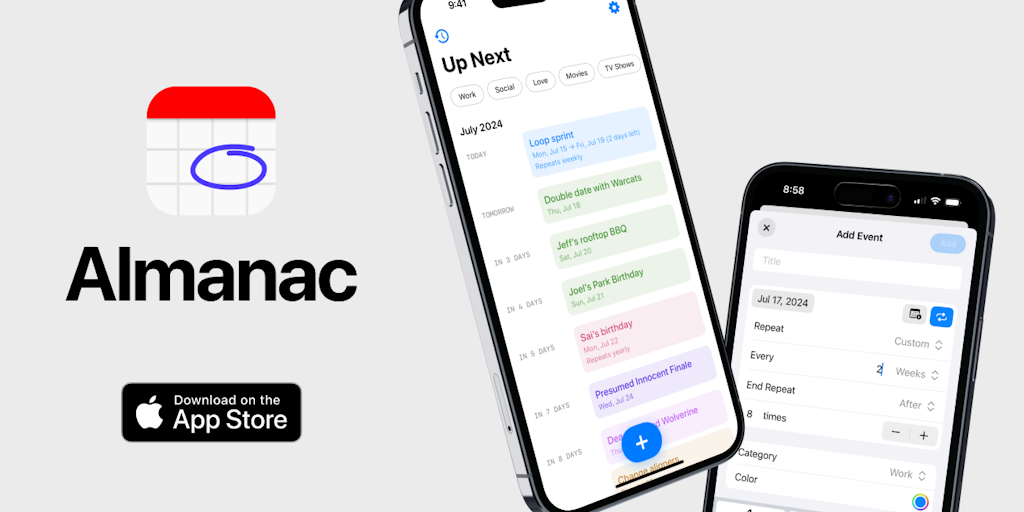 Almanac helps you track the moments worth looking forward to. Just add an event and it will be shown in a timeline of your life. Available now in the App Store: https://apps.apple.com/us/app/almanac-e