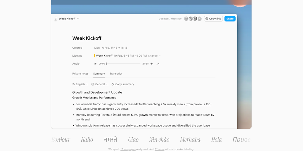 Turn meeting notes into automated workflows. Handle meetings, summaries, todos and emails with your AI personal assistant.