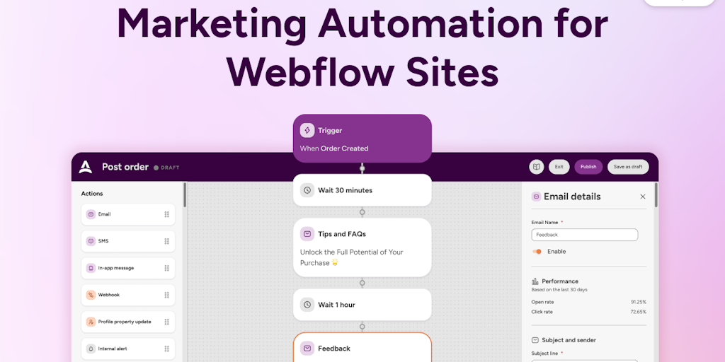 Apex empowers Webflow sites to automate email marketing. Use our visual journey builder to create personalized customer journeys and trigger emails based on real-time events. Engage, automate, and gro