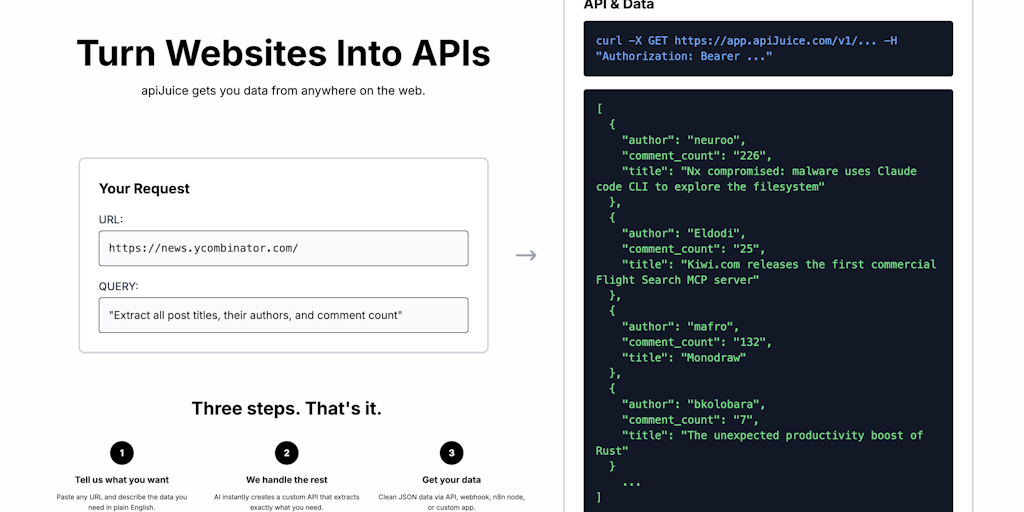 apiJuice: Create an API for anything in seconds | Product Hunt