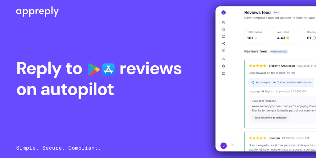 AppReply is the easiest and most affordable way to automate responses to user reviews on Google Play and the Apple App Store. Just invite AppReply with Customer Support permissions, and you'll be send
