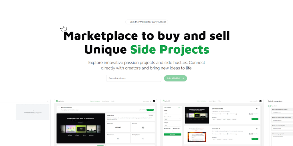 Aquireside - Marketplace to buy and sell unique side projects | Product Hunt