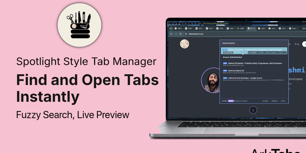 ArkTabs t is lightning-fast tab organizer that turns your browser into a productivity powerhouse. Inspired by launchers like Alfred or Spotlight, it lets you fuzzy-search, group, manage tabs, and even