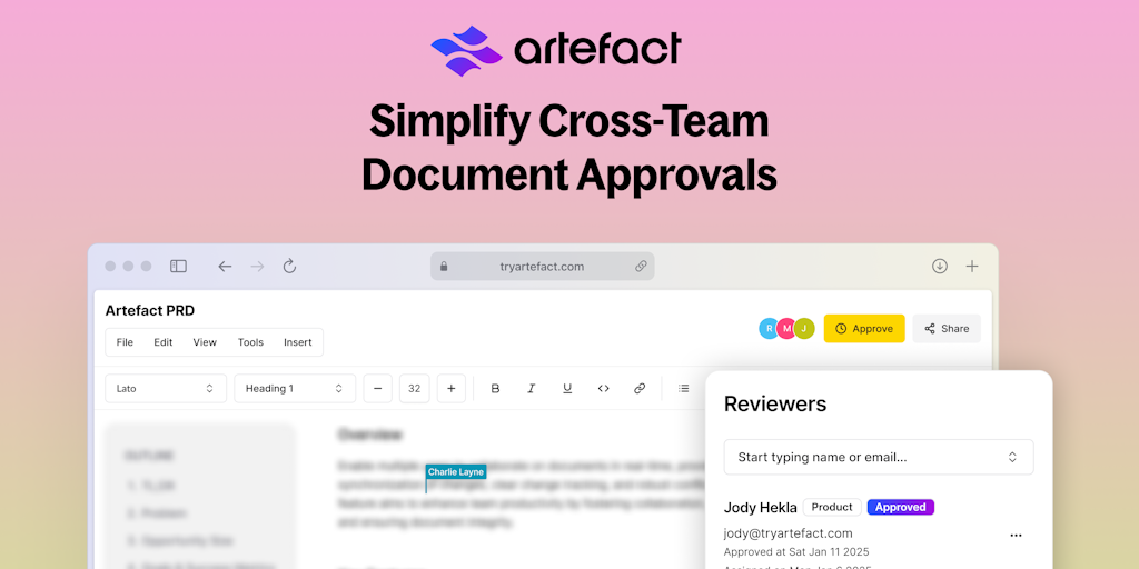 Artefact is the smarter way to create, collaborate, and get documents approved. With CRM-style tracking, built-in accountability, and AI-powered insights, we help teams replace document chaos with cla