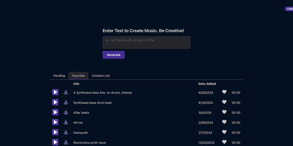Forge Your Sound - Easily create text to music in an easy to use app. All music generated is private to you, and can be downloaded and used freely. No subscriptions, uses a pay as you go credit system