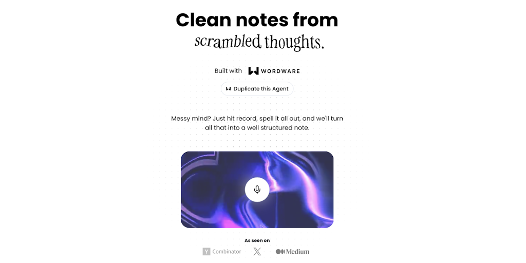 Just hit record, spell it all out, and Audioscribe will turn it into a well-structured note. This was created with Wordware - a tool (an IDE) for building AI agents. Feel free to duplicate the agent t