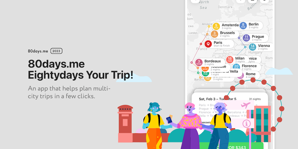 80days.me v3 - An app that helps plan multi-city eurotrips in a few clicks | Product Hunt