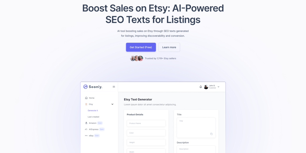 Seonly - Boost sales on Etsy, AI powered SEO texts for listings | Product Hunt