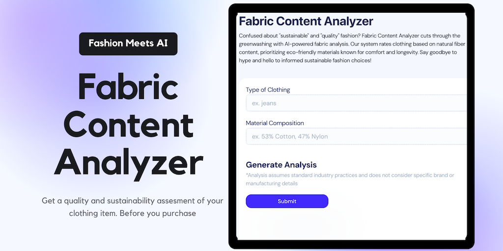Confused by "sustainable" & "quality" fashion? Fabric Content Analyzer cuts through the greenwashing with AI. Get instant ratings on clothing based on natural fiber content, prioritizing eco-friendly