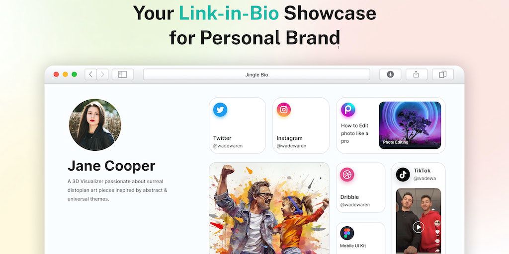 Build your brand with Jingle Bio. Showcase links, collections, skills, and achievements. Connect with your audience and leave a lasting impression.