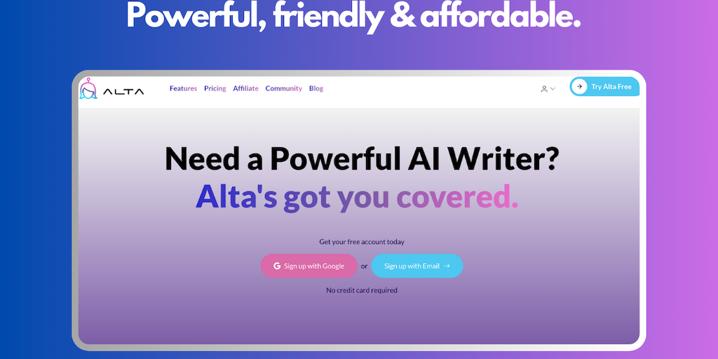 Alta - Your Ultimate AI writer: Powerful, Friendly & Affordable | Product Hunt