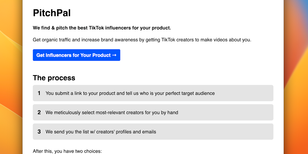 PitchPal - We find & pitch the best TikTok influencers for your product | Product Hunt