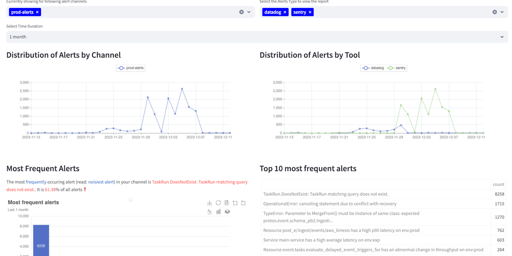 Doctor Droid's Alert insights tool helps engineering teams improve their existing observability setup by sharing insights & trends from analysis of their Slack alert channels.