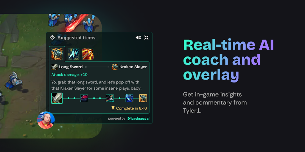Your in-game AI buddy, featuring the personas of your favorite creators. Co-founded by Tyler1, the top League of Legends streamer, get real-time coaching, stats and vibes to level up your gaming exper