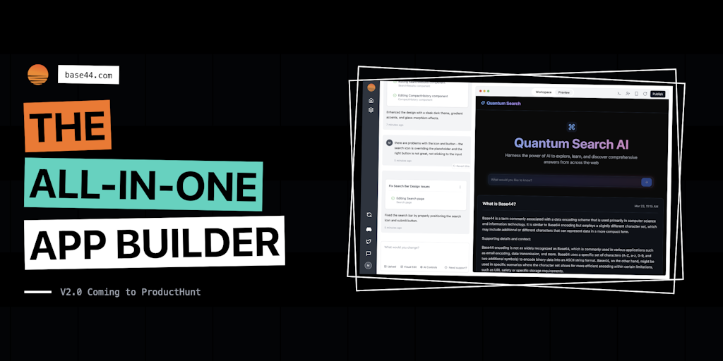 BASE44 2.0 - The all-in-one app building platform. No integrations needed | Product Hunt