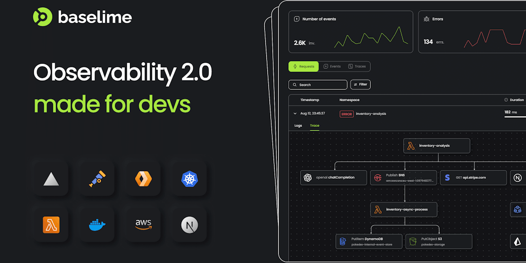 Baselime is the modern observability tool for cloud applications, enabling devs with real-time monitoring, centralized telemetry, proactive error detection, and resource optimization. For AWS Lambda,
