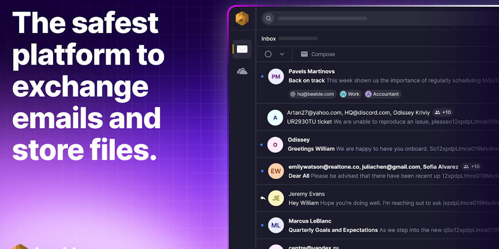 Beeble - The safest platform to exchange emails and store files | Product Hunt