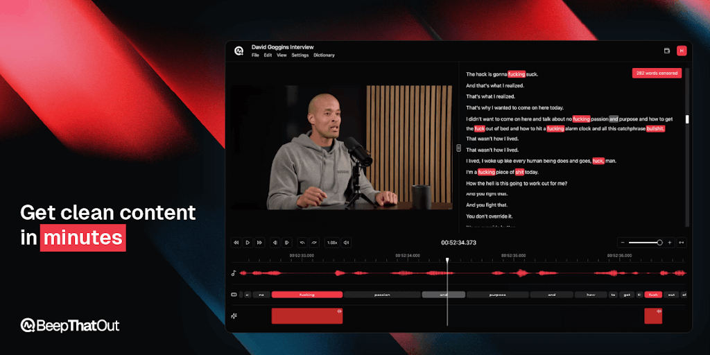 BeepThatOut - AI-powered profanity editor that works in your browser, built for YouTubers, podcasters, and other content creators. Cut time spent on editing, protect your monetization and keep full cr