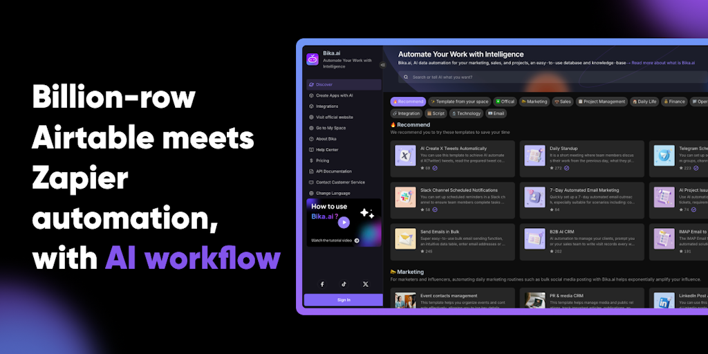 Bika.ai - Billion-row Airtable database meets GenAI Zapier automation | Product Hunt